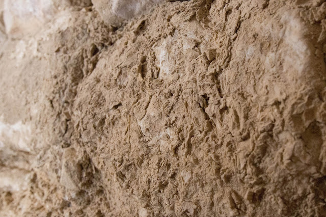 Podemos ver el negro del techo en donde seguramente se utilizaba para cocinar o calentar fuego en las frías noches del desierto. También podemos notar el tipo de «cemento» que se utilizaba en las paredes.