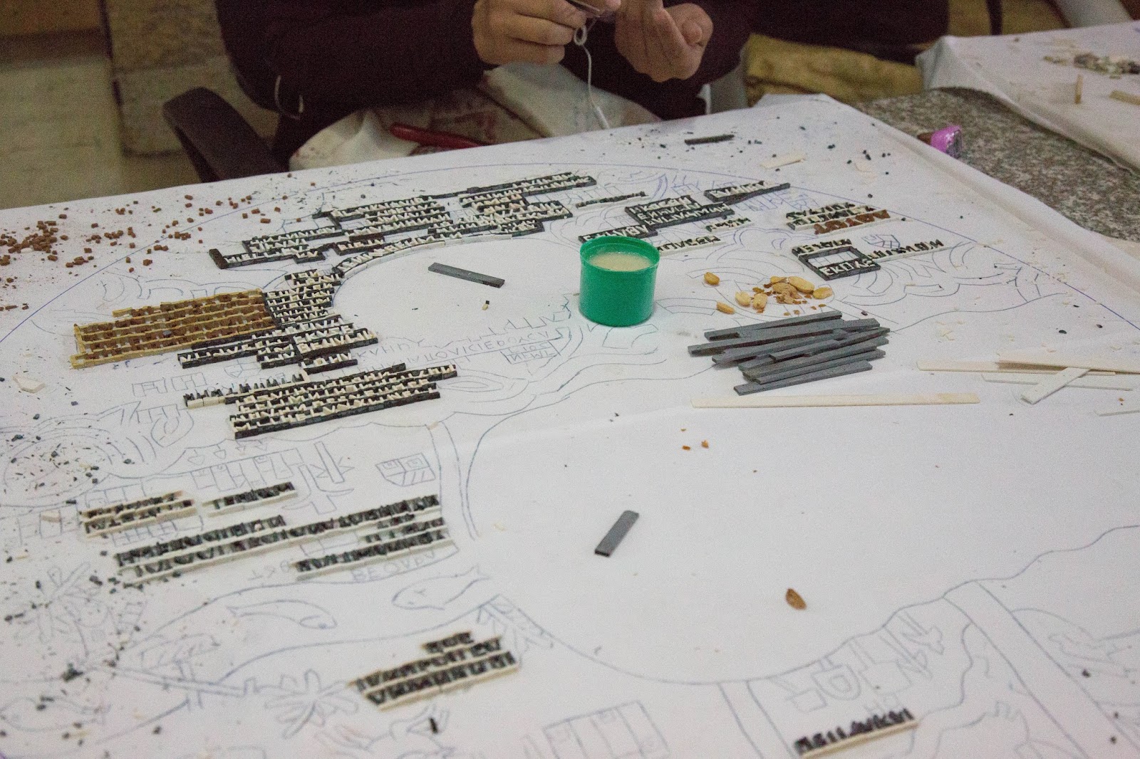 Hoy empezamos nuestro recorrido en un sitio en donde se realizan mosaicos para la venta. Aquí podemos ver los mosaicos en proceso.