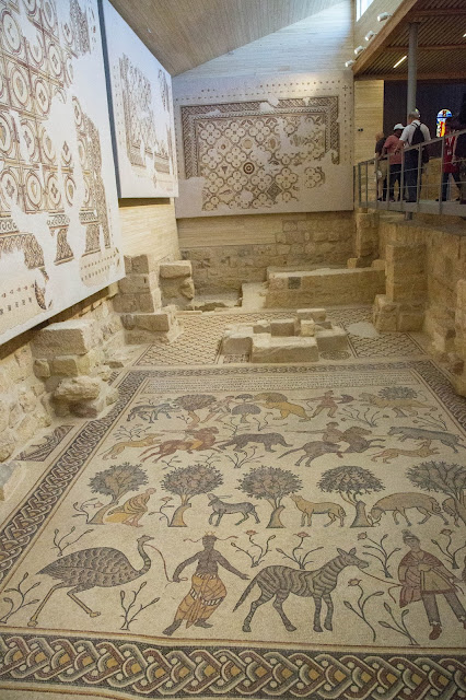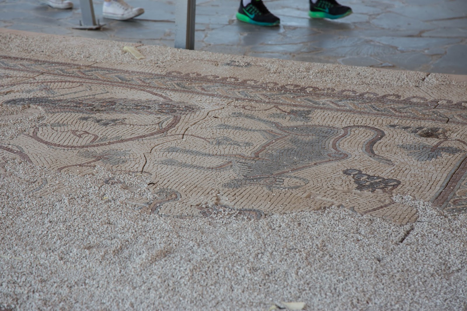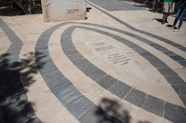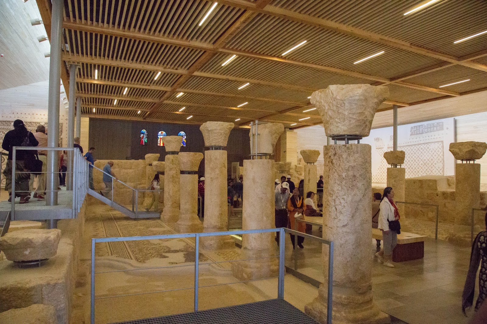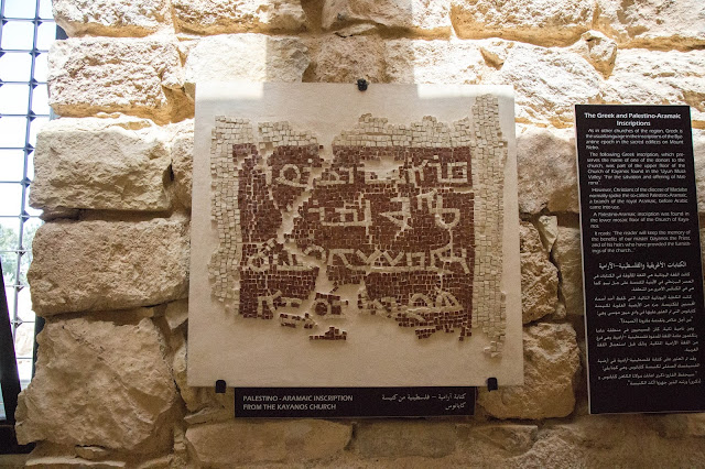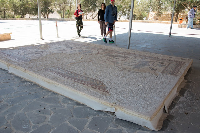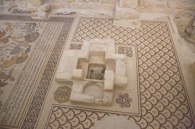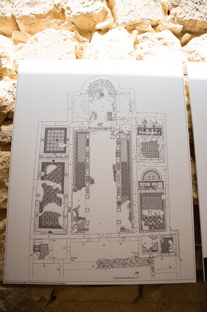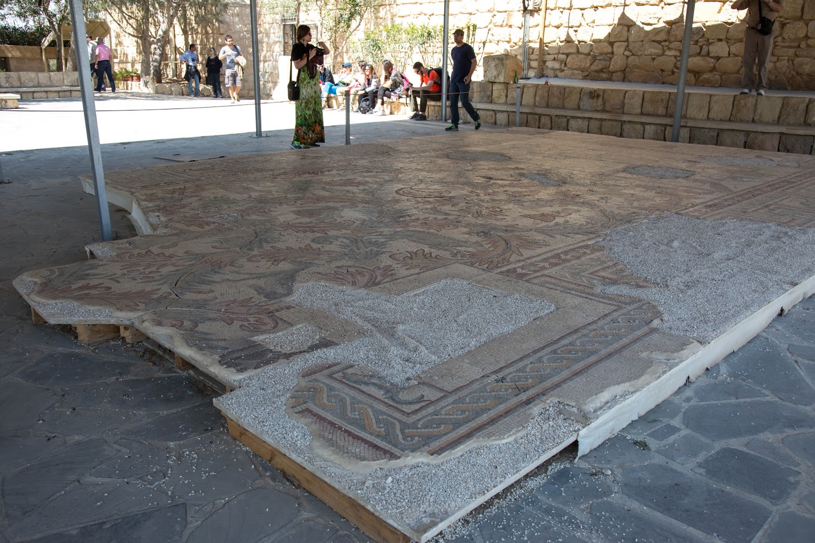 Recuerdan que en el post de Jerash mencionamos que en Monte Nebo había replicas de mosaicos? Aquí vemos un enorme mosaico y varios otros que ya apreciaremos apenas entremos a la iglesia.