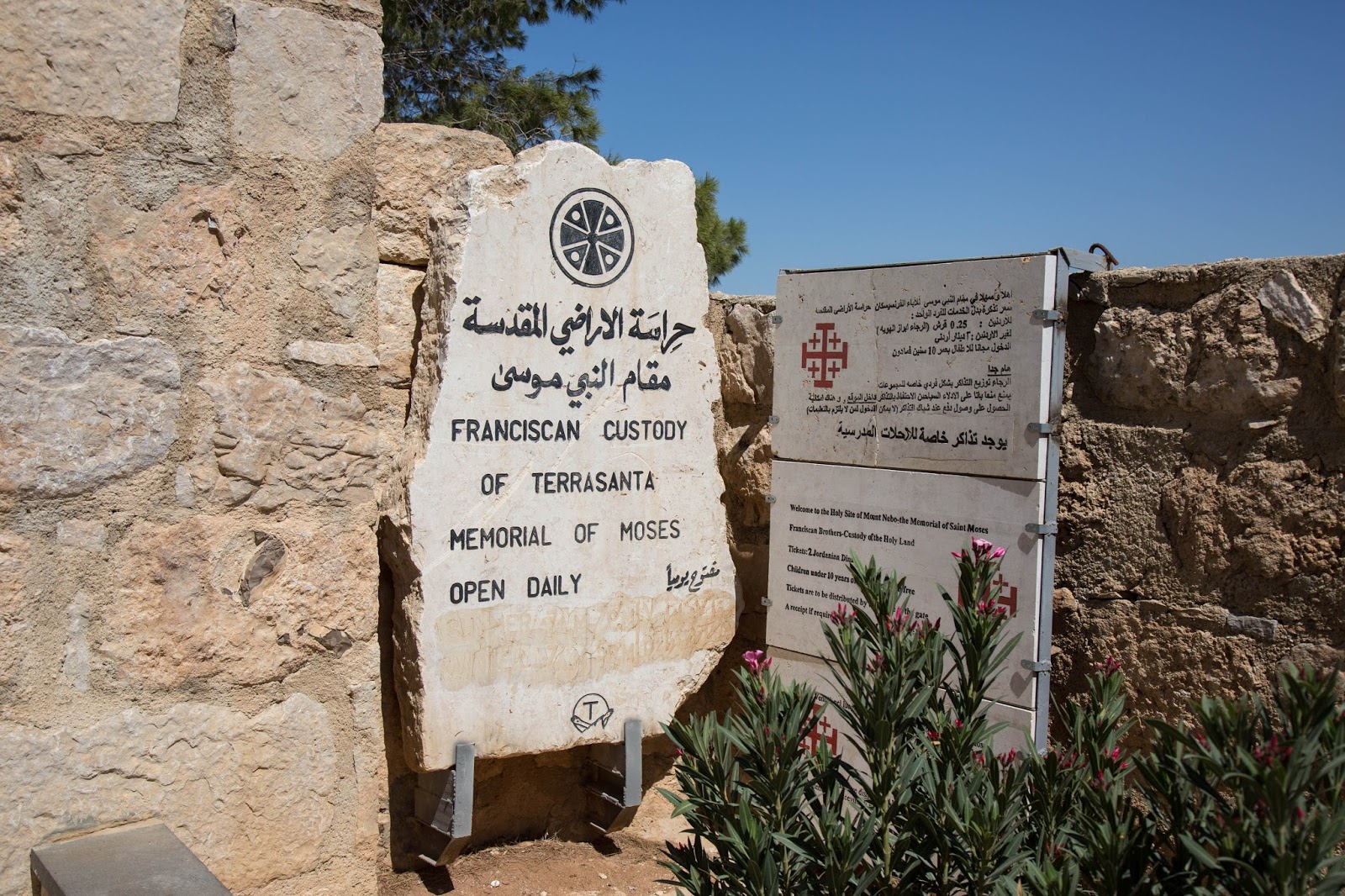 Como vemos en el cartel, los Franciscanos son los custodios de este sitio. Franciscanos Custodios de Tierra Santa, lo que significa que cuidan y tienen a su cargo 49 lugares considerados Bíblicos, el único en Jordania es Monte Nebo. Pero tienen (o tenían) dos en Siria en Damasco, 19 en Galilea, 27 en Judea y varias iglesias, escuelas, orfanatos, centros y muchos sitios más.