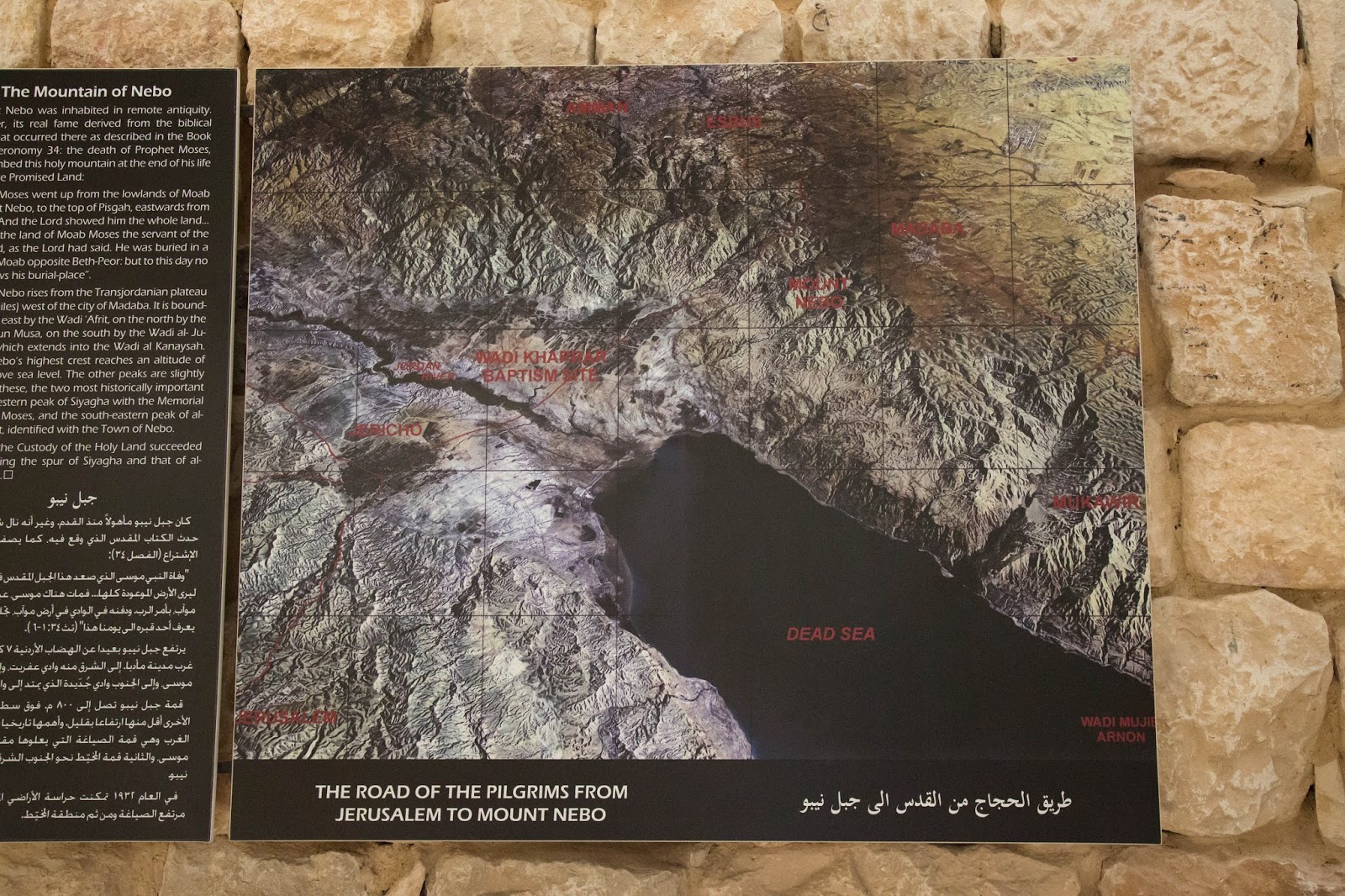 El Monte Nebo se encuentra en las montañas de de Moab o Abarim. Desde aquí se ve el rio Jordan y del otro lado esta Israel.