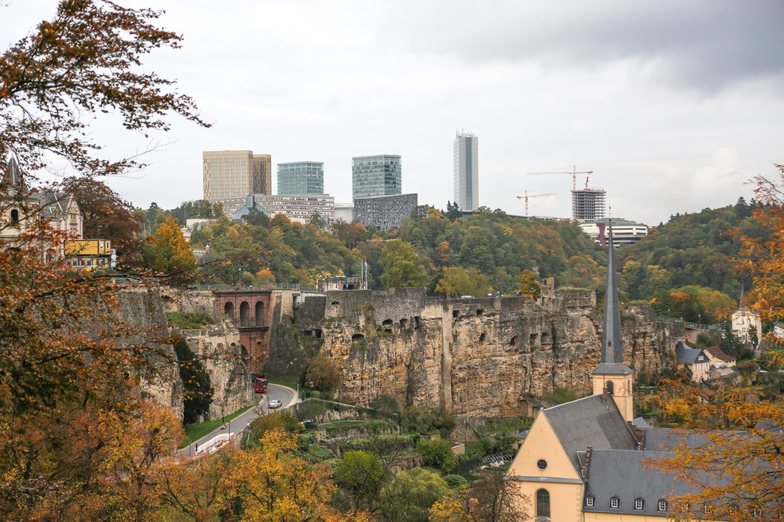 Cabe destacar que visitamos Luxemburgo en pleno otoño por lo que el follaje cambia el paisaje y el nublado día se embellece con los cientos de colores que encontramos.
