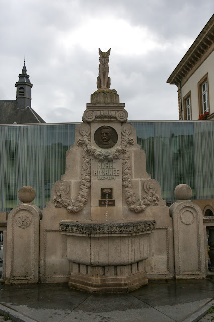 Un monumento al escritor luxemburgués Michel Rodange, en la punta un zorro en honor a su trabajo más reconocido: Renert.