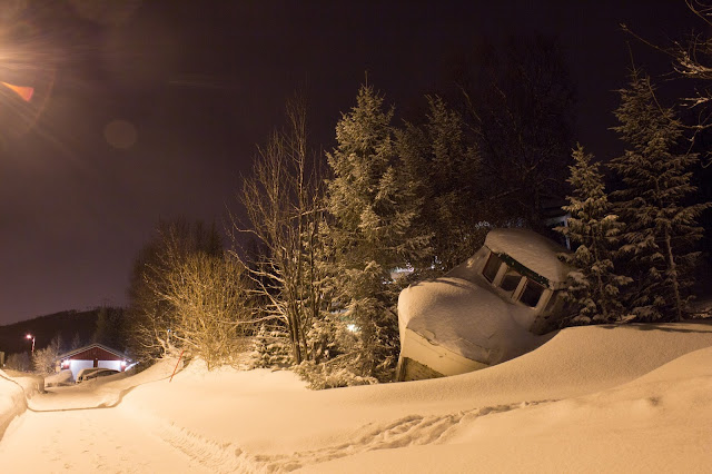 Se acuerdan de la Catedral del Artico? Pues casi no se puede ver de la nieve, y ni que decir la montaña que está detrás.