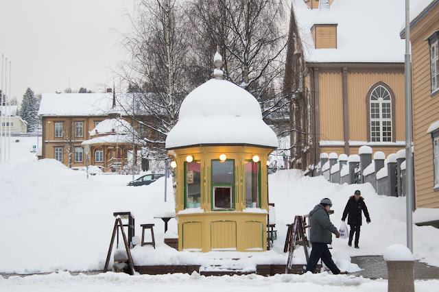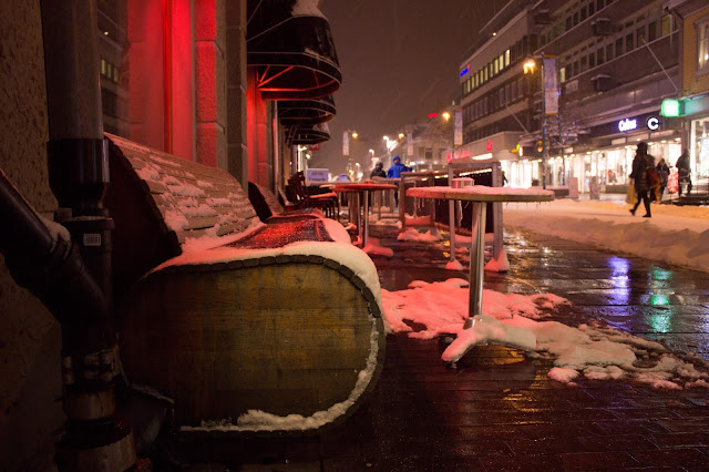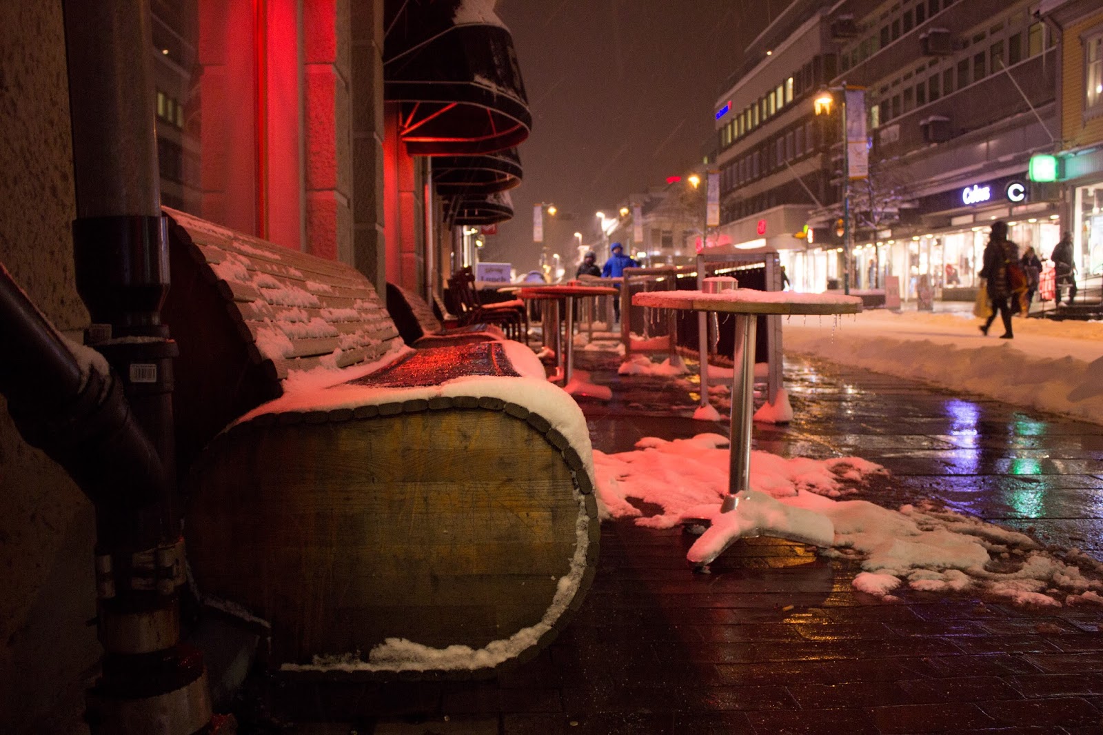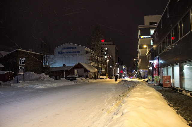 Fíjense en las veredas. Esta ciudad esta perfectamente preparada para el frío. Y tampoco es tanto frío, ya que por ejemplo nosotros salimos de Munich y en Tromsø hacía menos frío. Había más nieve, eso si. Esto se debe a que Tromsø recibe las corrientes cálidas del mar, si nos metemos más dentro del continente las temperaturas van bajando estrepitosamente.