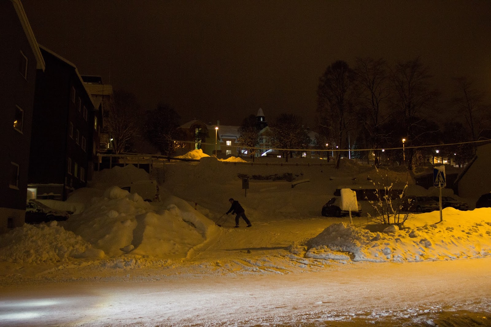 Algunas de las veredas tienen una especie de calentador lo cual hace que se puede caminar y que la nieve no se vuelva resbalosa. Pero se fijan la calle? Blanca! Así que si deciden manejar en Tromsø tengan en cuenta que será sobre nieve y probablemente también esté nevando.