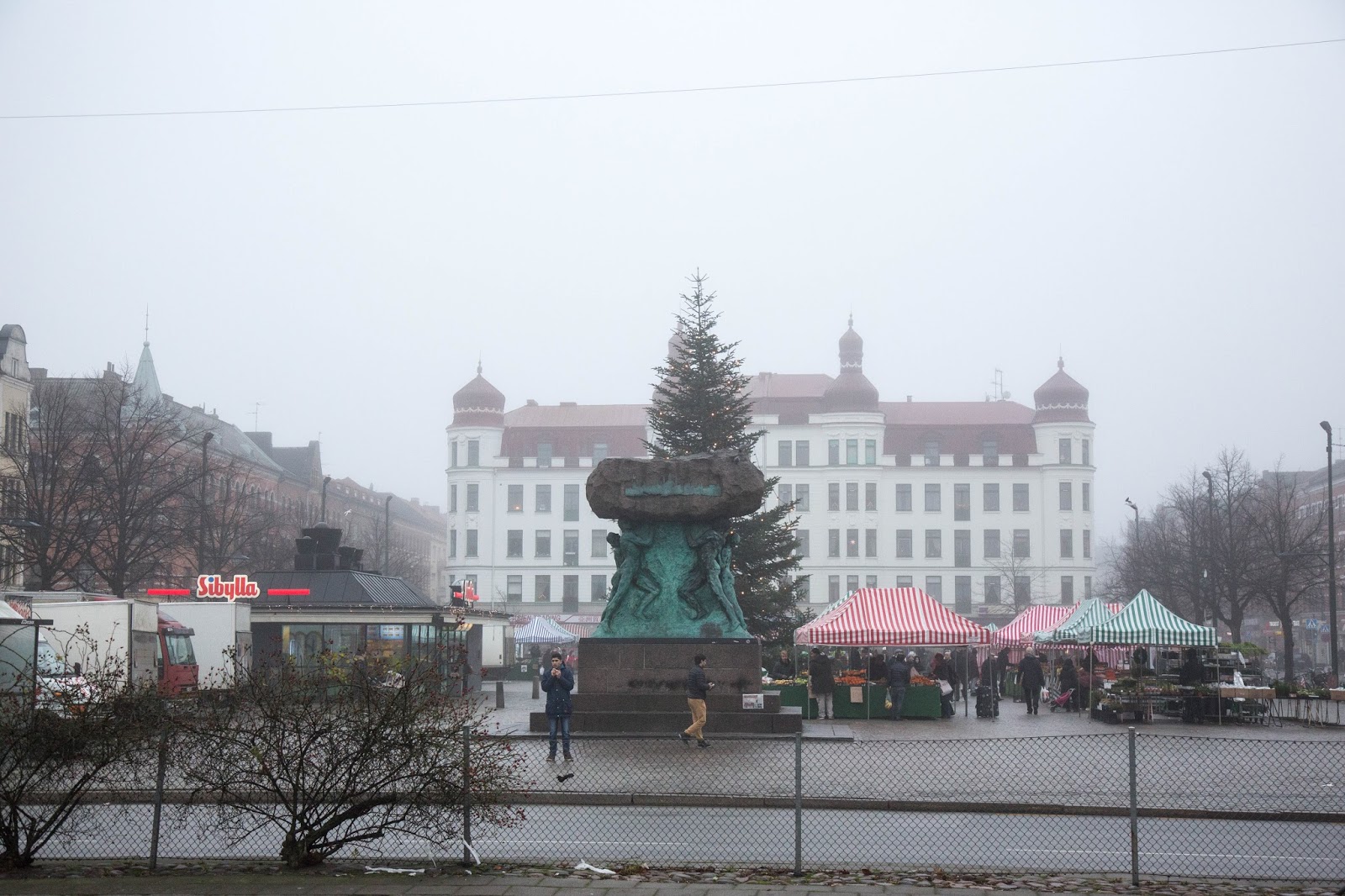 Nos encontramos en Möllevångstorget. La plaza donde es famosa la feria de productos naturales. También el distrito es conocido por su atmósfera liberal y variada.